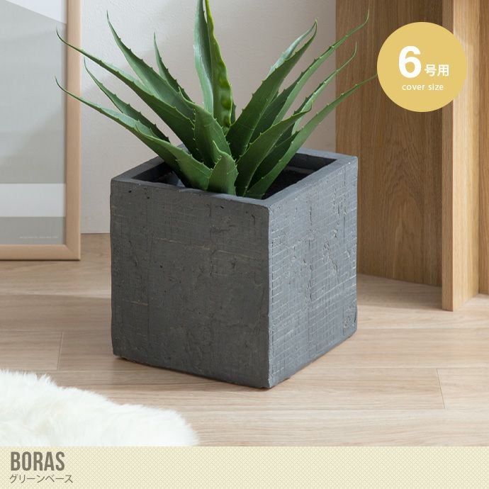 酸化マグネシウムを使用した『Boras ボロース』シリーズのグリーンベース。マグネシウム素材はプラスチック製に比べて高級感があり、陶器の鉢よりも衝撃に強くお手入れが簡単です。プランターカバーをすることで、観葉植物をセンス良く飾ることができます。