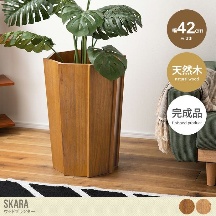 すらっと流れるような木目が美しい『Skara(スカーラ)』のウッドプランター。植物を鉢のまま入れるだけで、手軽に存在感や魅力をアップグレードしてくれます。天然木ならではの色合いや木目がひとつひとつ異なるのも、オリジナリティがあり魅力です。シンプルかつ、ありそうでない八角形の個性的なデザインはお部屋に置くだけでアクセントに。様々なテイストのお部屋と相性抜群です。