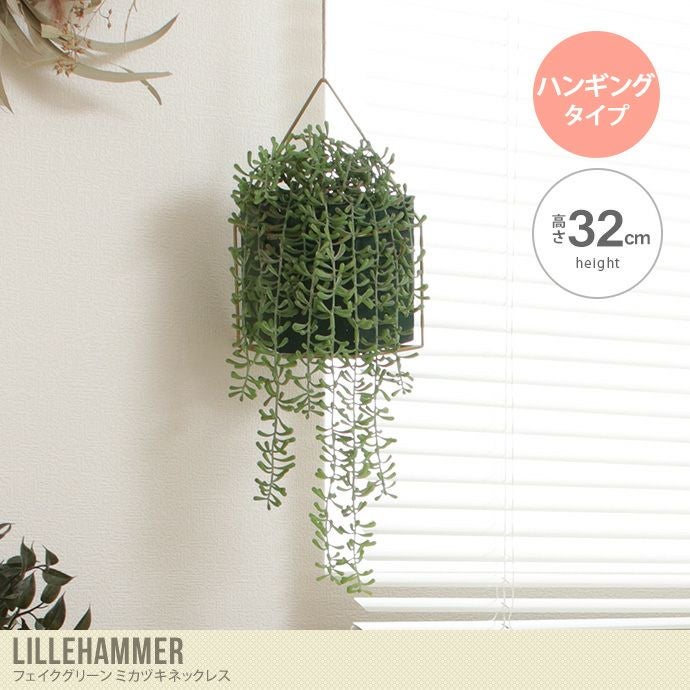 掛けるだけで簡単に飾れるハンギングタイプのフェイクグリーン『Lillehammer(リレンハメル)』シリーズのミカヅキネックレス。グリーンは癒しの効果があり、どんなインテリアにも馴染みやすくなっています。面倒な水やりや剪定が不要なので、手軽に取り入れやすく初めての方にもおすすめです。