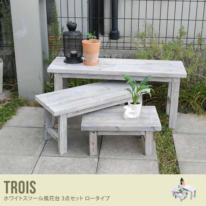 【送料無料】【3点セット・ロータイプ】花台 シャビーシック 天然杉 木目 シンプル ホワイト