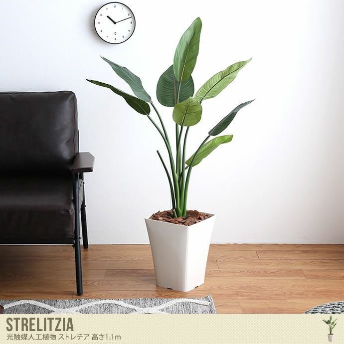 【送料無料】人工観葉植物 フェイクグリーン 高さ1.1m 人工植物 光触媒 インテリアグリーン 造花 インテリア おしゃれ ストレチア 消臭 抗菌 V-CAT グリーン お家で過ごす おうち時間 グリーン