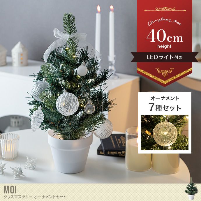 他の画像を見る 【送料無料】Moi モア 高さ40 クリスマスツリー 小さい ミニツリー LEDライト付き オーナメントセット 40cm もみの木 電飾 卓上ツリー 電池式 ホワイト 白い クリア 可愛い ボール 松ぼっくり リボン ラメ Xmas christmastree グリーン 販売価格 ¥ 2,999 税込 送料込 カートに入れる お気に入りに登録する