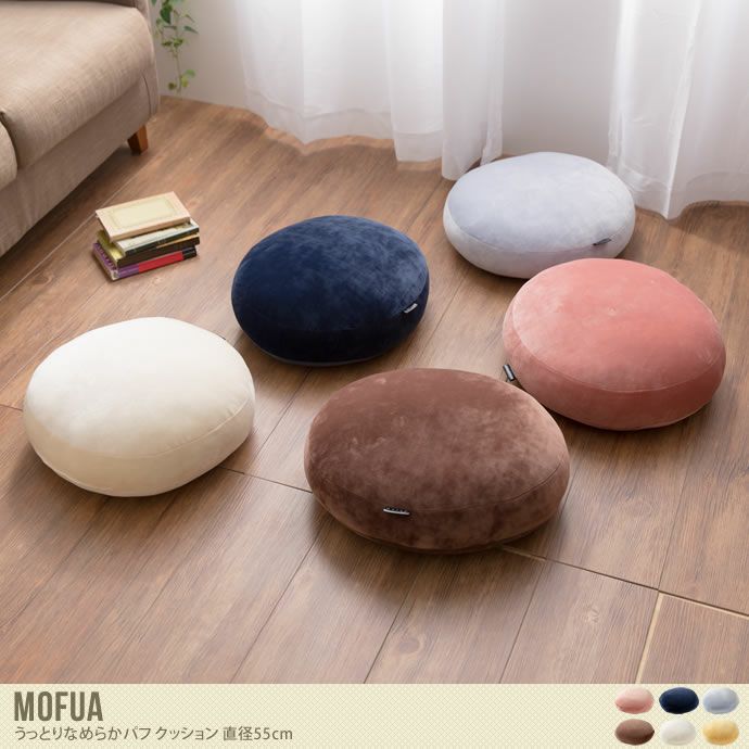 『Mofua』うっとりなめらかパフクッションは、なめらかで柔らかくしっとりした肌ざわりのクッションです、直接肌にふれるものだからこそ、“ずっと触れていたい”と思える極上の肌ざわり。素肌に触れた瞬間から、とろけてしまうほどの心地よさを感じさせます。また、安心へのこだわりとして静電気防止加工を施しています。不快なパチパチ感をカット、ホコリも引き寄せず、乾燥した冬場にはうれしい加工です。カラーは6色ご用意。お部屋のイメージやお好みに合わせてお選びください♪