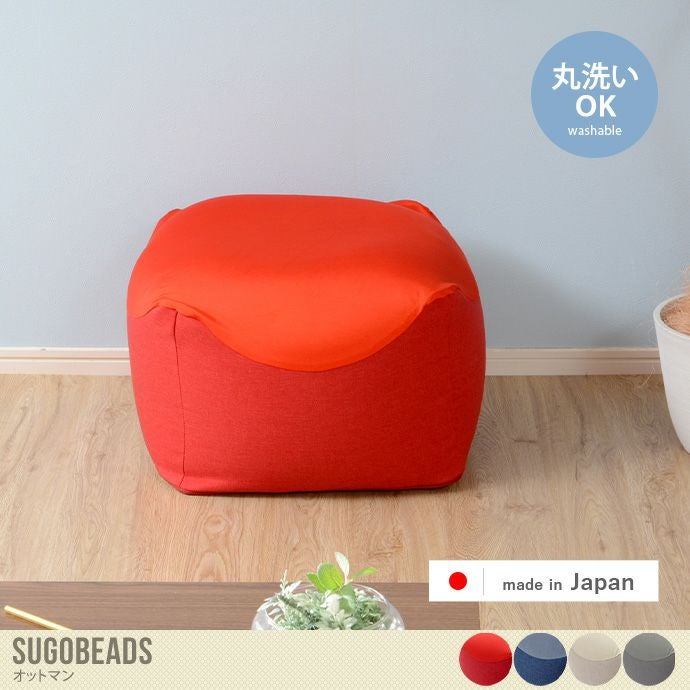 もっちりとした弾力で脚を支える『Sugobeads(スゴビーズ)』オットマン。ビーズの配合にこだわり、長時間の使用でも疲れにくいです。脚を乗せるオットマンとしてはもちろん、ビーズクッションとして座っていただくことも可能。カバーは外して洗濯できるので衛生的です。品質にこだわった安心の日本製で、へたりにくく長くお使いいただけます。