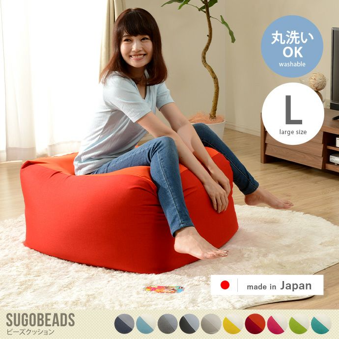 もっちりとした弾力で身体を支える『Sugobeads(スゴビーズ)』ビーズクッション。中材のウレタンとビーズを程よく混ぜ合わせることで身体へのフィット感と安定感のある座り心地を実現。カバーは外して洗濯できるので衛生的。品質にこだわった安心の日本製で、へたりにくく長くお使いいただけます。