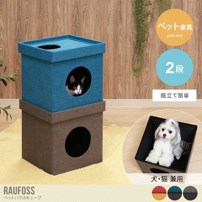 遊び心満載の重ねて使えるペットハウスキューブ『Raufoss(ラウフォス)』。2つのキューブを連結して上下を移動することができるので、穴を通りぬけて遊んでいただけます。3タイプのバイカラーがかわいくておしゃれなデザイン。お部屋に合わせてカラーをお選びいただけます。