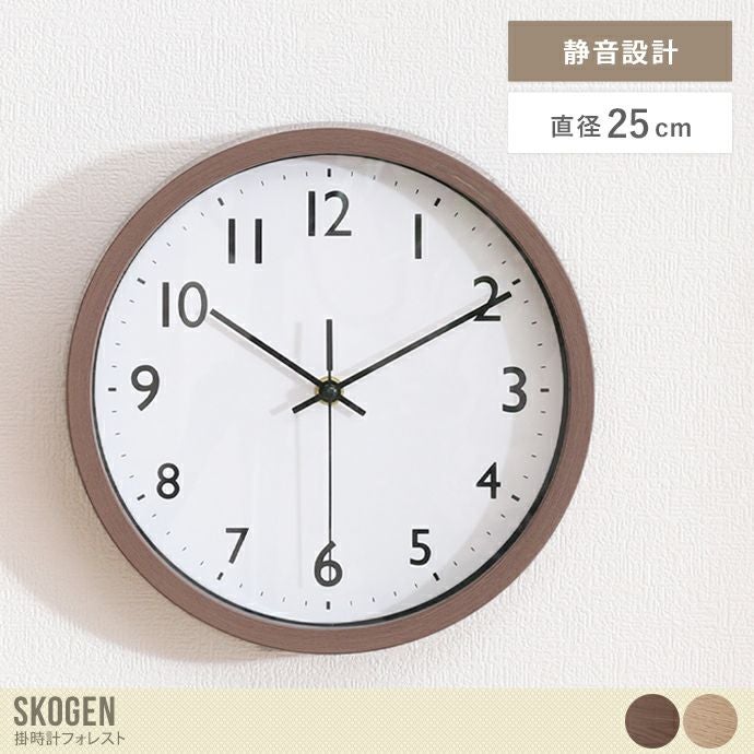 自然のぬくもりを感じる木目フレームが、どんな空間にも優しくなじむ『Skogen(スコーゲン)』掛時計。数字が大きく視認性に優れ、使いやすさも抜群です。ナチュラルインテリアにぴったりの上質なデザインで、毎日の時間を心地よく演出します。さらに秒針は滑らかに連続して動くスイープ式を採用。静音性に優れており、寝室や書斎など静かな環境にも最適です。