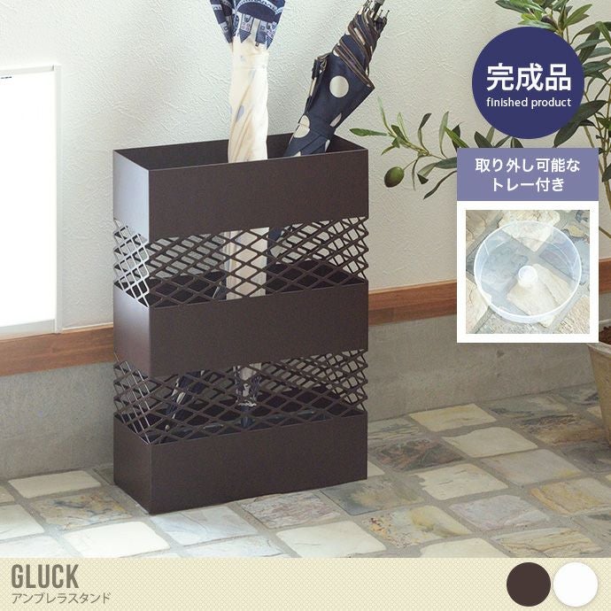 シンプルながらインテリア性の高い『Gluck(グラック)』アンブレラスタンド。直線的なフォルムとメッシュの組み合わせがおしゃれで、置くだけでスタイリッシュな空間になります。スリム設計なので、スペースのない場所でも使用可能。また丈夫なスチール製なので、倒れにくく使い勝手も抜群です。
