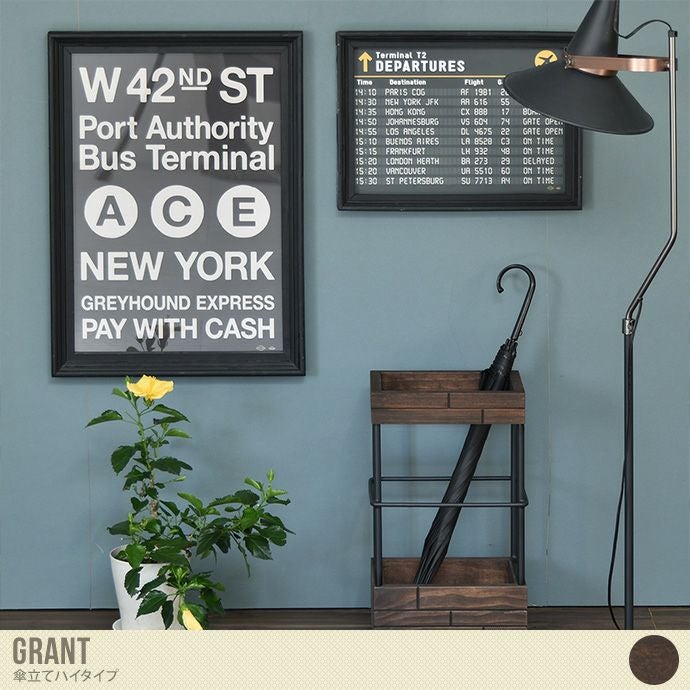 植物性のオイル塗装で仕上げた、いろいろなサイズの天然木の板を個性的なブロック状に組み合わせて作られたシリーズ『Grant』。中段にはフックがついているので、折り畳み傘を引っ掛けて収納できたり、底には取り外し可能な水受けトレーが付属しているので、床が濡れるのを防ぎます。