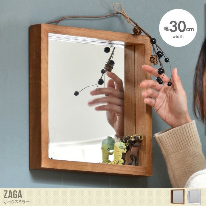 幅30cm ミラー ボックスミラー 鏡 壁掛け アンティークミラー 天然木 桐 古木風 壁掛けミラー かがみ 玄関かがみ ブラウン