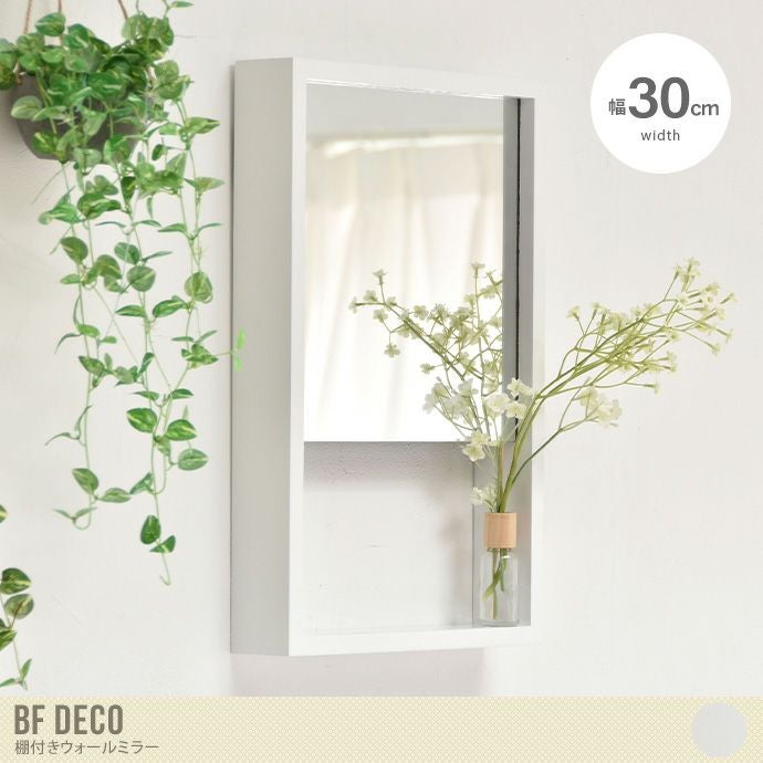 幅30 ミラー ウォールミラー 壁掛け おしゃれ おすすめ 鏡 収納 棚付き 飾り ディスプレイ 姿見 メイク 化粧 身だしなみ 省スペース 玄関 リビング 長方形 角型 面取り加工 飛散防止加工 ドレッサー 一人暮らし ホワイト