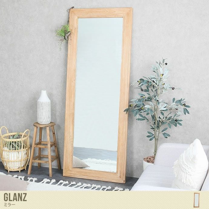 木のぬくもりが感じられるナチュラルデザインの『Glanz』ミラー。幅70cm、高さ180cmのワイドタイプですが、立て掛けタイプだから省スペースに設置いただけますよ。大きなミラーを置くことで奥行が感じられて、お部屋が広く見える効果があります! いつものお部屋が上質な大人空間に変わりますよ。またお家のみならず、アパレルショップやサロンなどの店舗什器としても活躍。頭からつま先まで全身が映るから、出掛ける前のチェックもばっちりです!