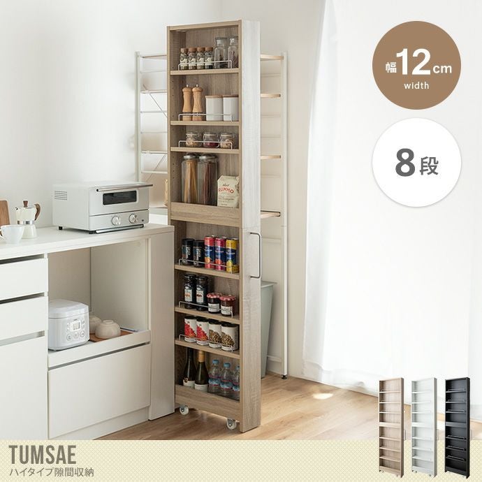 他の画像を見る 【送料無料】Tumsae トゥムセ 幅12 隙間収納ラック すき間収納ラック ハイタイプ 12cm キャスター付き キッチン収納 棚 隙間ラック すきま収納 隙間ストッカー スリムラック キッチンワゴン 細い 薄型 ナチュラル 販売価格 ¥ 9,899 税込 送料込 カートに入れる お気に入りに登録する