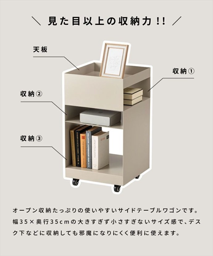【送料無料】幅35 サイドテーブル テーブル ワゴン 収納ワゴン ナイトテーブル ミニテーブル テーブルワゴン おしゃれ おすすめ 安い キャスター付き 収納 オープン くすみカラー コンパクト デスク ソファ ベッド 韓国 かわいい マット ベージュ