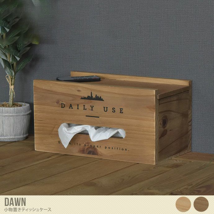 生活感が出てしまいがちなティッシュの箱をオシャレなインテリアに生まれ変わらせます。天然木で古い小箱をイメージして作られたドーンシリーズは、ヴィンテージ風の加工がおしゃれでインテリアを楽しめる収納シリーズです。