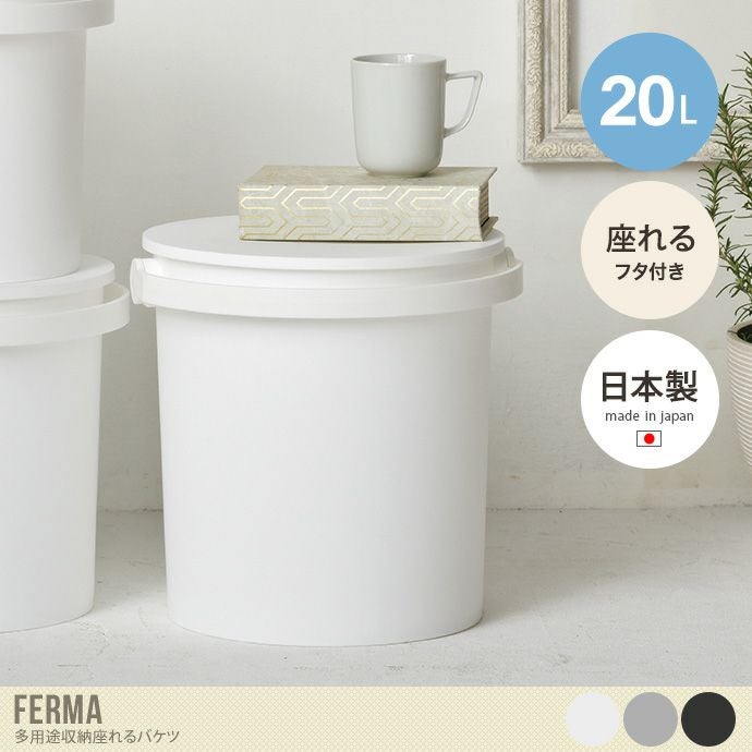 バケツ フタ付き 座れる 20L Ferma フェルマー 小型 シンプル 収納ボックス 収納ケース 収納雑貨 シンプル 日本製 完成品 室内 屋内 屋外 アウトドア スツール サイドテーブル 丸型 いす 椅子 チェア JEJアステージ ホワイト