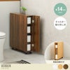 幅14 トイレラック サニタリー収納 ラック スリム トイレ掃除 木製 隙間収納 すきま収納 キャスター付 トイレットペーパー収納 薄型 木目 トイレブラシ 掃除道具 太巻きサイズ ホワイト