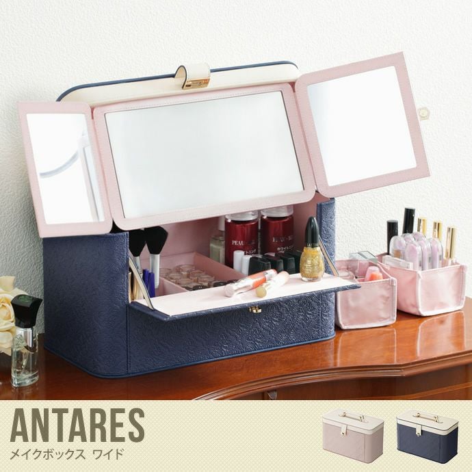 他の画像を見る 【送料無料】Antares コスメボックス バニティケース メイクボックス アラベスク柄 ワイド 三面鏡 ピンクベージュ 販売価格 ¥ 16,130 税込 在庫切れ 送料込 カートに入れる お気に入りに登録する