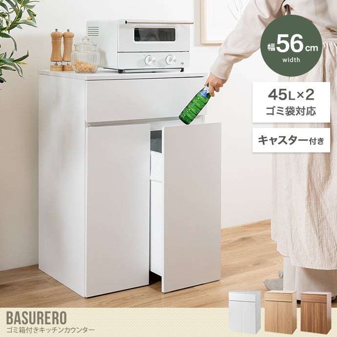 他の画像を見る 【送料無料】Basurero バスレーロ 幅56 ゴミ箱 分別 45リットル 45L ダストボックス キッチンカウンター ごみ箱 キャスター付き 2つ スリム コンパクト 大容量 キッチン収納 リビング 木目調 幅55cm 食器棚 レンジ台 ホワイト 販売価格 ¥ 17,999 税込 送料込 カートに入れる お気に入りに登録する