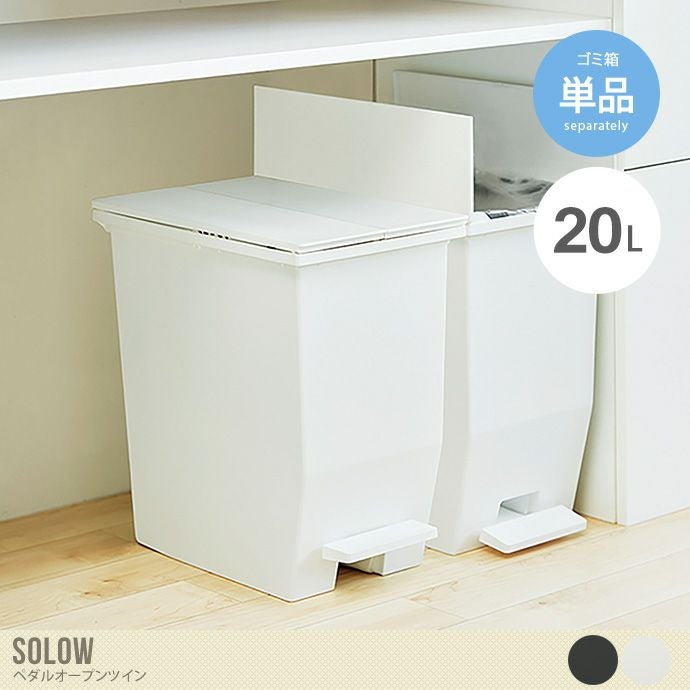 キッチンカウンター下で使いやすサイズのダストボックス。フタもペダルを踏むだけで左右が開き、大きいゴミなど簡単に捨てることができます。