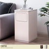 木目とぬくもりとスタイリッシュなデザインがおしゃれな『Empro』シリーズの、コンパクトで使いやすいプッシュ式木製ダストボックス。ニオイが漏れにくく押すだけで簡単に捨てられるプッシュ式扉と、ゴミ袋の着脱が簡単な前扉が便利なダストボックスです。シンプルなデザインなのでリビングやデスク、寝室にも置きやすく、ソファやデスクの隙間に置いてサイドテーブルとしてもご利用いただけます。また、木板は撥水性と耐久性に優れた素材を用いております。