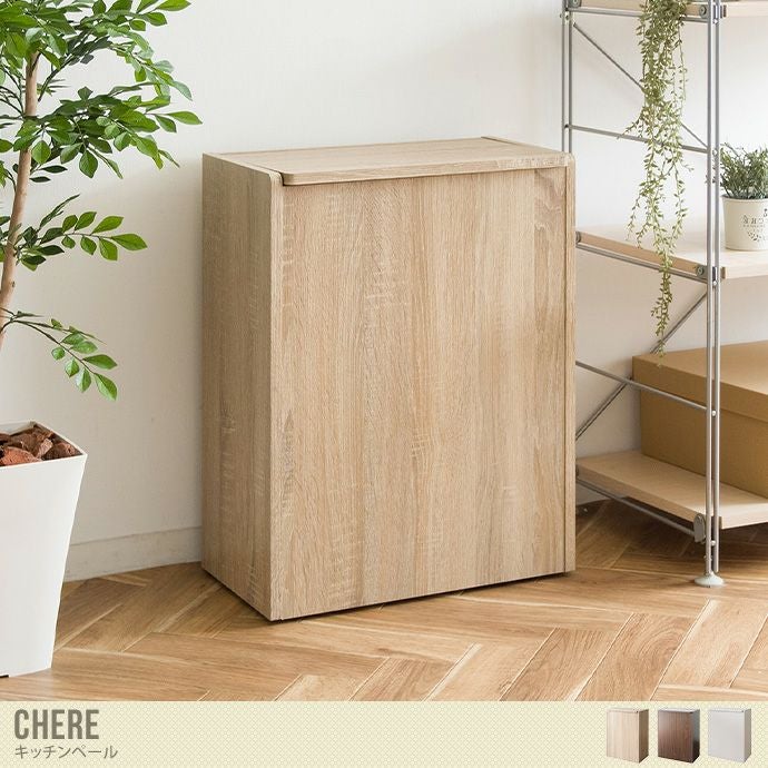 ゴミ箱だと分かりにくい、シンプルでスタイリッシュなキッチンペール『Chere(シェール)』。木の温かみを感じさせる木目調は上質感を醸し出し、お部屋のインテリアともよく馴染みます。フタつきなのでニオイ漏れを防ぎ、生活感もカバーします。内部にはゴミ袋を止めるリングや、移動しやすいキャスター付きなど機能的です。