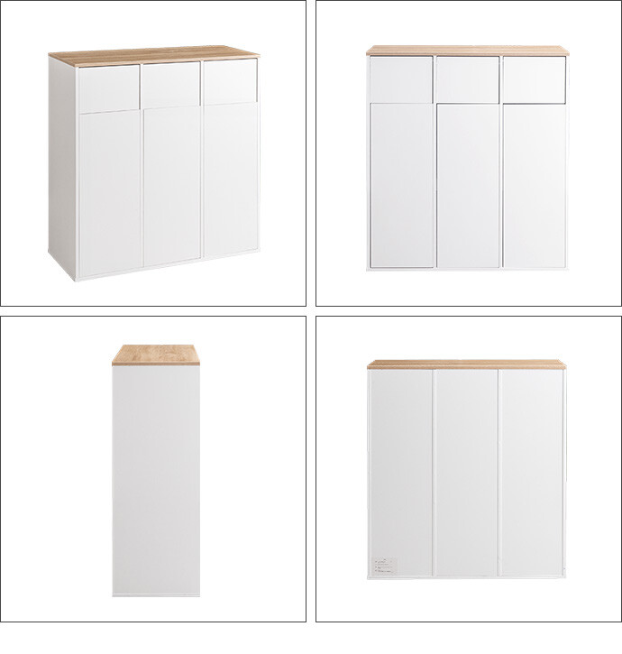 【送料無料】Toy トイ 幅74.5 3連式ゴミ箱 分別 ダストボックス ごみ 縦型 ふた付 フタ 蓋 キッチンカウンター お洒落 シンプル リビング インテリア 45l リットル 木目 モダン ウッド スウィング扉 ホワイト