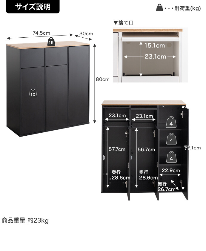 【耐荷重】天板:約15kg、棚板:(各)約4kg、底板:約10kg