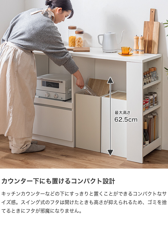 【送料無料】Konpu コンプ 幅30 ゴミ箱 フタ付き ダストボックス ごみ箱 おしゃれ おすすめ 安い ゴミ袋 隙間 蓋 分別 スイング 目隠し 大容量 縦型 見えない 蓋付き 20L 15L キッチン 台所 リビング ダイニング 洗面所 寝室 カウンター下 ホワイト