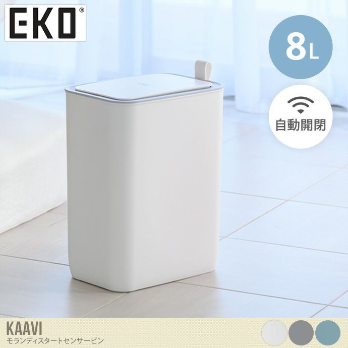 幅17 雑貨 キッチン ゴミ箱 ごみ箱 ダストボックス EKO 8L 自動開閉 自動 電池式 センサー付き センサー式 非接触 ふた付き 小さい スリム 角型 キッチン リビング トイレ 寝室 玄関 洗面所 ホワイト