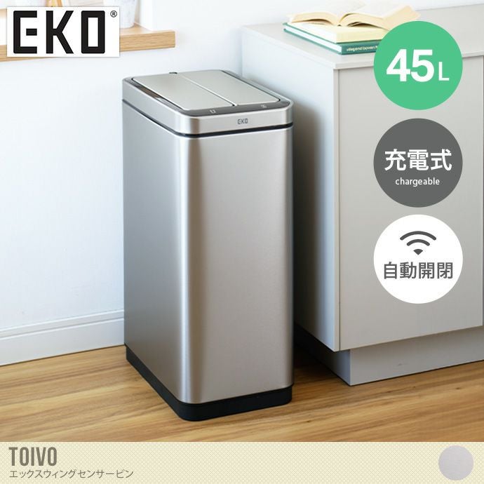 【送料無料】幅27 雑貨 キッチン ゴミ箱 ごみ箱 ダストボックス EKO 45L 45リットル 自動開閉 自動 充電式 USB センサー付き センサー式 非接触 フタ付き 蓋 両開き 縦型 大容量 大きい 角型 リビング ダイニング シルバー