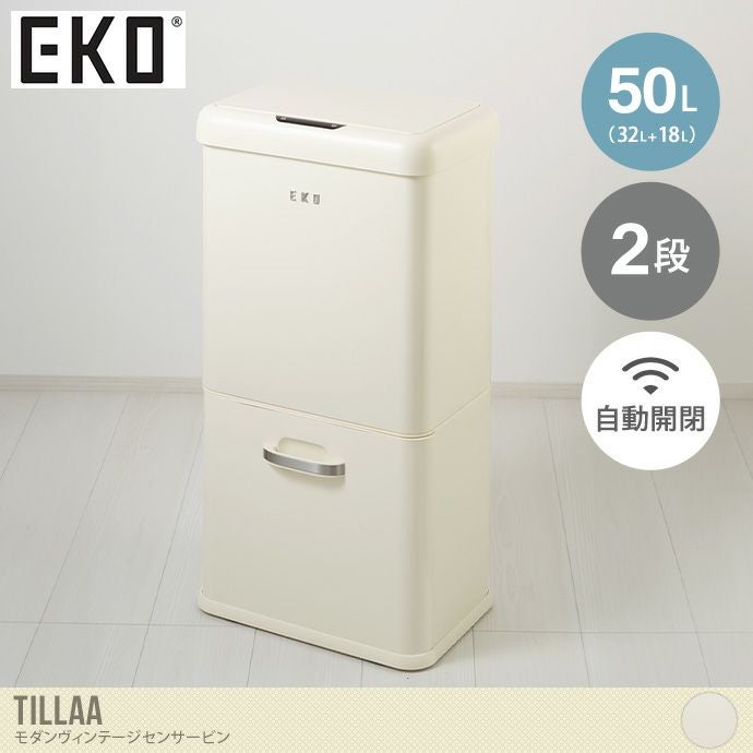 【送料無料】幅38 雑貨 キッチン ゴミ箱 ごみ箱 自動ゴミ箱 ダストボックス 50L EKO スリム 自動開閉 大容量 分別 ふた付き 乾電池式 2段 2分別 縦型 センサー 引き出し コードレス 静か リビング キッチン 生ごみ 缶 ビン アイボリー