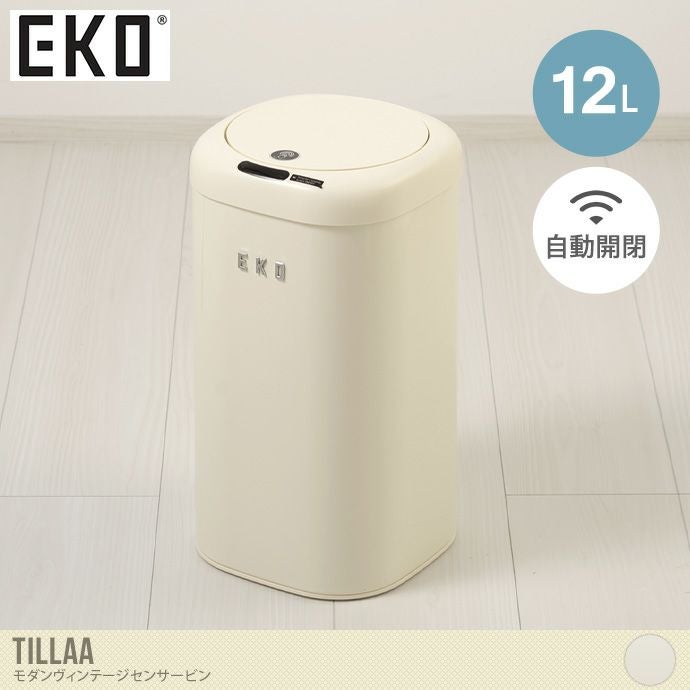 幅21 雑貨 キッチン ゴミ箱 ごみ箱 自動ゴミ箱 センサー付きゴミ箱 ダストボックス 12L EKO スリム コンパクト 自動開閉 ふた付き 乾電池式 センサー 縦型 コードレス 静か リビング キッチン 洗面所 トイレ アイボリー