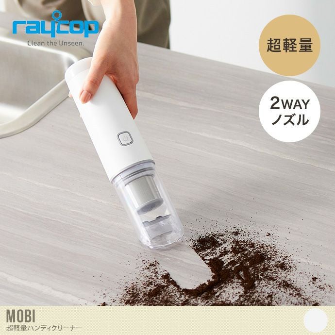ハンディクリーナー 掃除機 レイコップ raycop コードレスクリーナー 超軽量 ミニ コンパクト 強力吸引力 2WAY ブラシノズル 隙間ノズル ハンドクリーナー ハイパワー Mobi RMC-100JPWH HEPAフィルター 99.9% 埃 ダニ お手入れ簡単 ホワイト