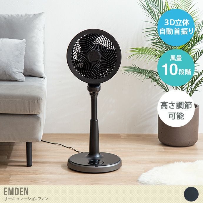 3D首振りでパワフルなサーキュレーションファン『Emden(エムデン)』。強く直進性の高い風を送るサーキュレーターの特徴と上下/左右の自動首振りで広範囲に送風できる扇風機の特徴を兼ね備えた1台2役の商品です。お部屋の換気とエアコンの冷暖気を効率よく循環させることができます。