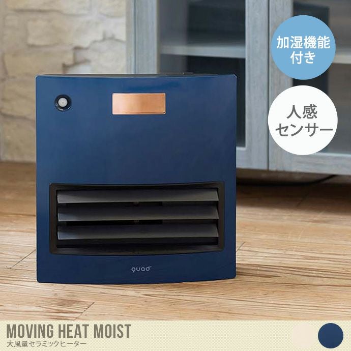 便利機能がたくさん備わったセラミックヒーター『Moving heat moist(ムービングヒートモイスト)』。ヒーターだけでなく、加湿機能も搭載。通常のセラミックヒーターと比べ、遠くまで温かな風を送る事ができるように、風道を改良しました。他にはない大風量モデルです。また、転倒時自動OFF機能や、人の動きを感知してON・OFFを切り替えてくれる人感センサーも搭載しているので、安心して使っていただけます。
