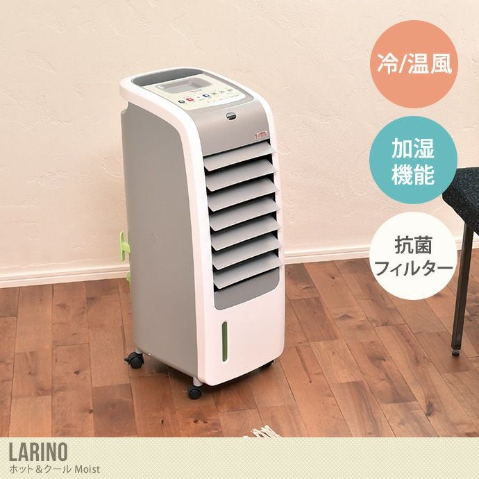 送風・涼感・加湿・温風の1台4役の優れもの、一年中活躍する『Larino(ラリノ)』。ホット&クール モイストが誕生しました。爽やかな風の涼風と、温かい温風機能に加え、涼風は水で湿った抗菌フィルターで、冷たい風を送る仕組みです。身体を直接冷やさずに涼感を得られる為、高齢者やエアコンが苦手な方におすすめです。