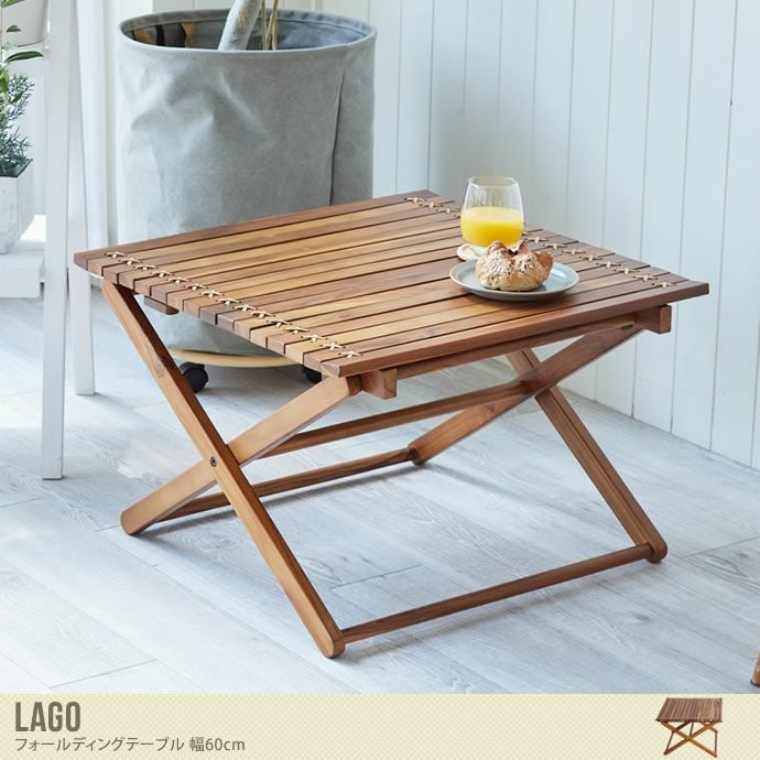 ベランダやお庭をカフェのようにオシャレに彩る『Lago』のシリーズの幅60cmのテーブルです。屋外でのご利用に合わせて耐候性と耐久性に優れたチーク材を使用しており、木材のつなぎ目には上品で丈夫な本革を使用しております。また、天板はロール式になっており、収納や持ち運びが簡単で、ちょっとしたレジャーやキャンプでも使いやすいテーブルです。屋外だけでなくリビングなどの屋内でもご利用可能で、ダイニングテーブルやサイドテーブルとして幅広くご利用いただけます。