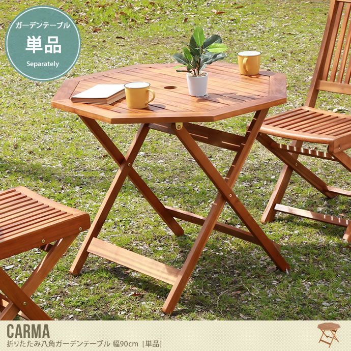 深みのある色合いで、高級感のある天然木アカシアを使用したガーデンやベランダ作りが楽しくなる洗練されたガーデンシリーズ『Carma折りたたみ八角テーブル幅90cm』。オイルフィニッシュ加工を施したテーブルは衝撃や曲げにも強く、オイルフィニッシュ加工で腐りにくいので長く使っていただけ、折りたたみが出来るので持ち運びも楽々!屋外・屋内どちらでもお使いいただけます♪