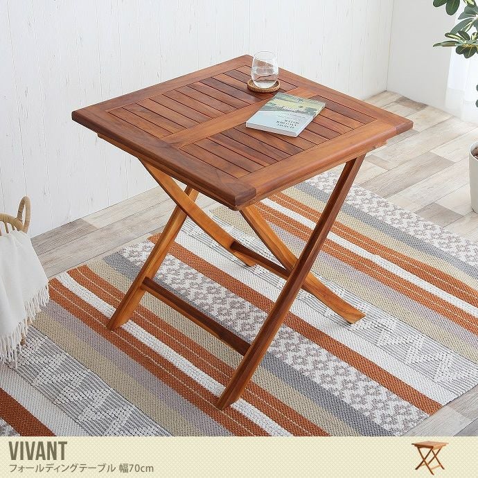 【送料無料】【幅70cm】 ガーデンテーブル テーブル 机 アウトドア 庭 ベランダ バルコニー テラス ガーデンファニチャー BBQ カフェ 組み立て 北欧 モダン ナチュラル シンプル カフェ 木製 天然木 ライトブラウン Vivant ヴィヴァン チークナチュラル