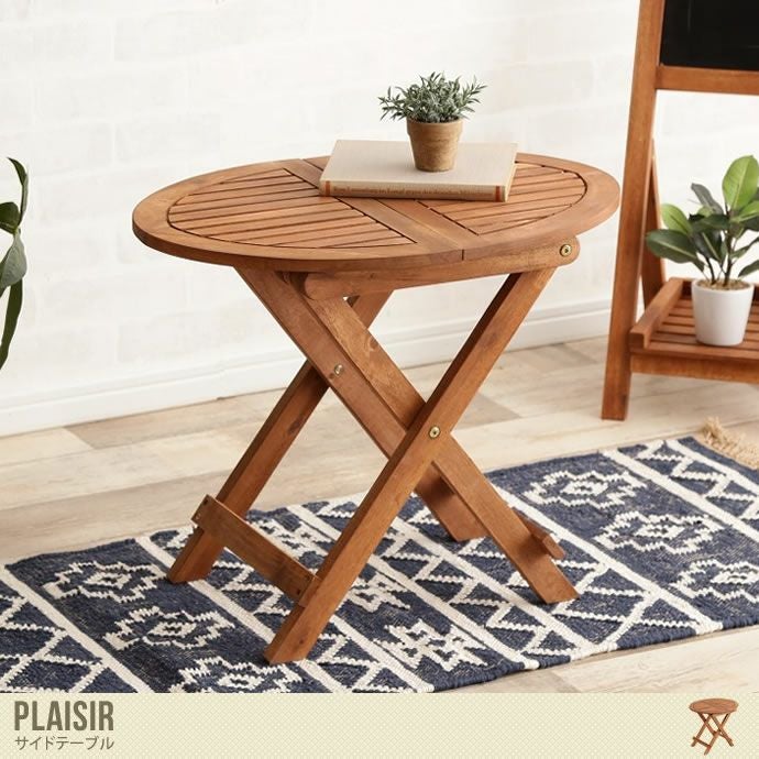 屋内外どちらでも利用できる折りたたみ式のサイドテーブル♪コンパクトサイズで設置場所にも困らず、軽量タイプで移動もラクラク、折りたたみ方もとってもカンタンです!素材には美しい木目が印象的な”アカシア材”を使用。衝撃力や曲げに強く、耐久性にも優れている木材です。インテリア家具に多く利用されるのも納得。オイル塗装されているため、木肌のあたたかみを残した質感となっています。折りたたむことでスマートフォルムとなり、ちょっとしたスペースがあれば収納場所にも困りません。