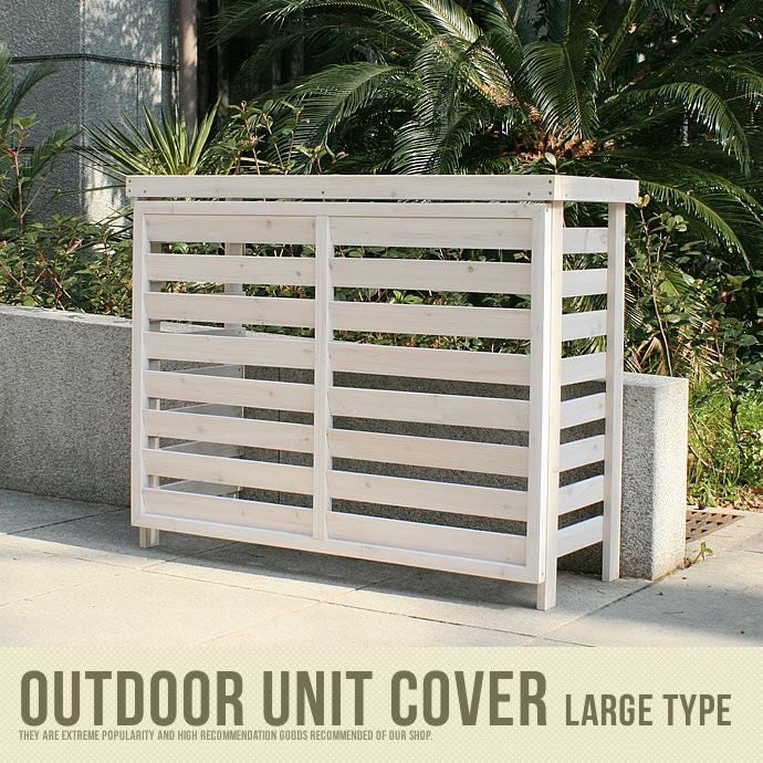 【送料無料】室外機カバー 111×43 収納庫 大型タイプ 木製 ダークブラウン
