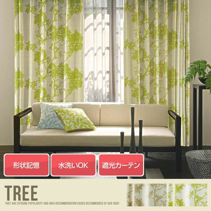 TREE 1枚 【100×135cm】 【100×178cm】 【100×200cm】 ウォッシャブル 遮光 ベージュ【100×200】