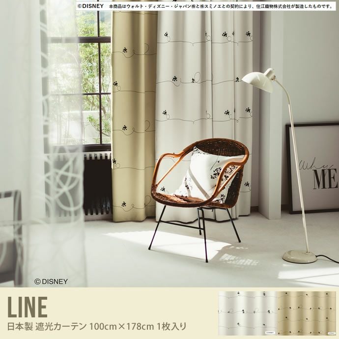 Line ミッキー 遮光カーテン 日本製 100×178 カーテン ウォッシャブル 遮光 形状記憶 可愛い ミッキーマウス ディズニーアイボリー ベージュ シンプル ナチュラル アイボリー