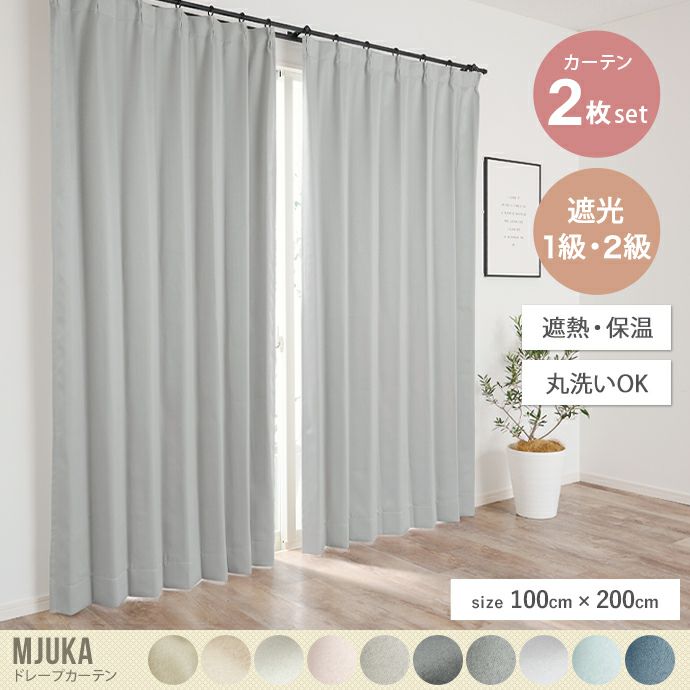 他の画像を見る 幅100 丈200 カーテン ドレープカーテン 遮光カーテン 2枚セット 2枚組 1級遮光 遮光 遮熱 断熱 保温 省エネ 節電 無地 ウォッシャブル 洗濯 洗える 形状安定加工 タッセル アジャスターフック ニュアンスカラー くすみカラー ライトグレー 販売価格 ¥ 9,790 税込 カートに入れる お気に入りに登録する
