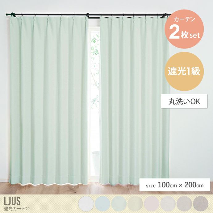 柔らかな質感で、絶妙なニュアンスカラーが可愛らしい『Ljus(リュース)』遮光カーテン。遮光率が最も優れている1級遮光の生地を採用。外からの光をほとんど通さず、日中でもお部屋を暗くすることが可能です。また洗濯をしても縮みにくいポリエステルを使用。洗濯機で丸洗いができ、いつでも清潔にお使いいただけます。さらにカラーは8色ご用意しました。お部屋の雰囲気に合った、お好みのカラーをお選びください。