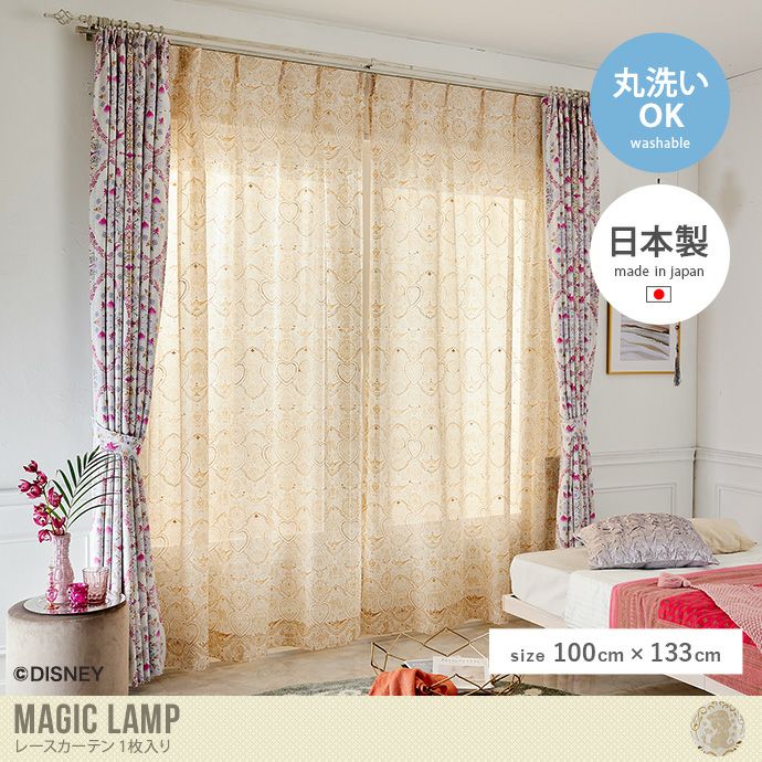 他の画像を見る ボイルカーテン 100×133 ディズニー Disny アラジン ジャスミン 魔法のランプ カーテン レース 洗える ウォッシャブル 子供部屋 キッズ 日本製 メイドインジャパン disneyhome 薄地 ゴールド 販売価格 ¥ 6,220 税込 カートに入れる お気に入りに登録する