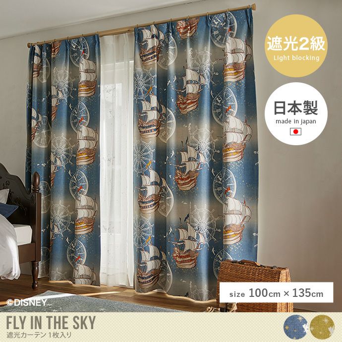 ドレープカーテン 100×135 ディズニー Disny ピーターパン カーテン ドレープ 遮光2級 形状記憶 洗える ウォッシャブル 子供部屋 キッズ 日本製 メイドインジャパン disneyhome PETER PAN スミノエ ブルー