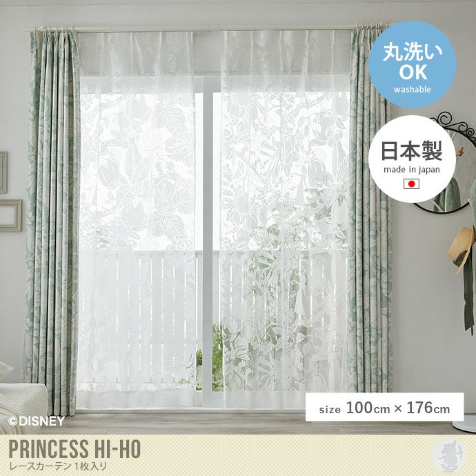白雪姫をモチーフにしたウォッシャブルカーテン『Princess hi-ho(プリンセスハイホー)』からレースカーテンが登場しました。デザイン性の高い薄手のレースが心地よい光をお部屋に取り込んでくれます。外気に触れやすいカーテンでも、ご家庭の洗濯機で簡単に丸洗い可能。同じプリンセスハイホーのドレープと合わせるとよりおしゃれにインテリアカーテンとしてもお楽しみいただけます。
