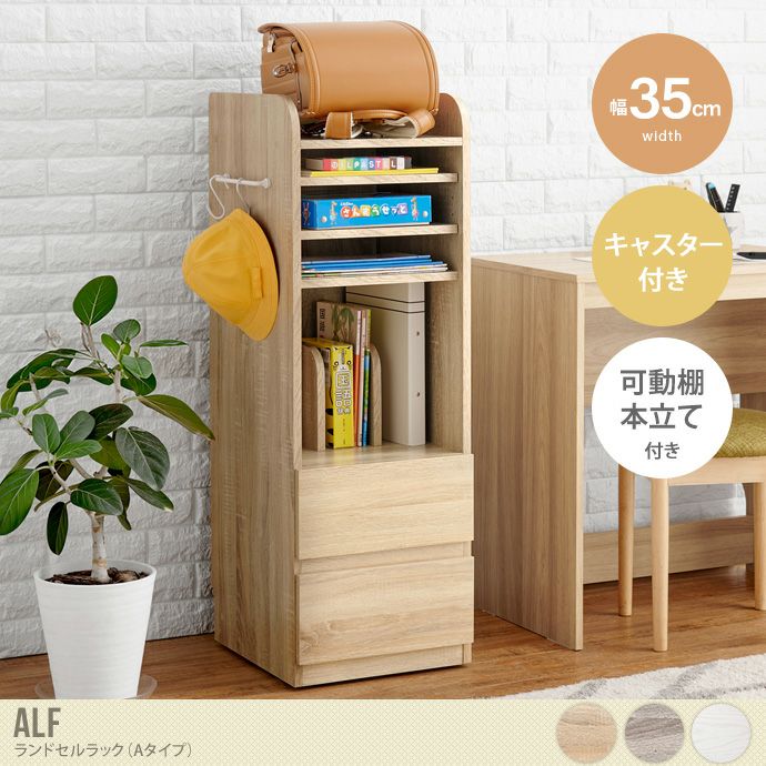 【送料無料】幅35 子供家具 キッズ収納 ランドセルラック 収納棚 絵本棚 棚 ランドセル収納 収納ラック 引き出し収納 おしゃれ おすすめ 高さ107 スリム 可動棚 キャスター付き サイドフック 引き出し かわいい 入学準備 木目 子供部屋 ナチュラル